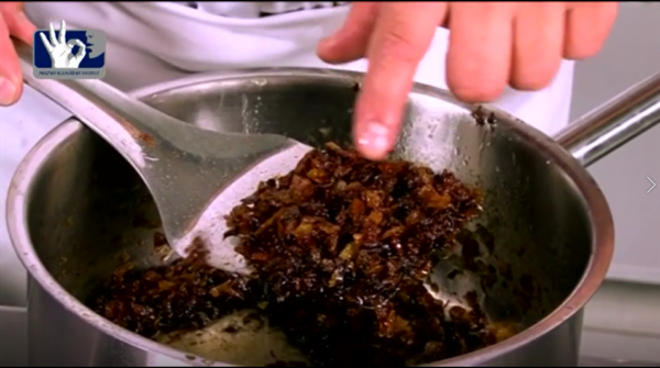 - Osolíme a opepříme. Šťávu, které maso pustí necháme odpařit. Stále odškrabáváme dno abychom dostali zkaramelizovaný cukr z cibule ze dna.