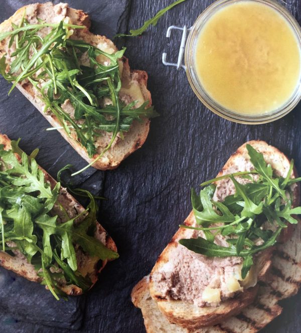 - Opečené krajíce chleba natřeme nahrubo kachním paté a ozdobíme rukolovým salátem.