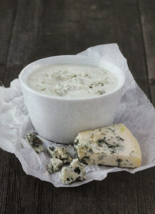- Sýr rozdrobíme do mísy, pak ještě promačkáme spodní stranou vidličky. Vmícháme zakysanou smetanu, (domácí) majonézu a dochutíme citronovou šťávou.