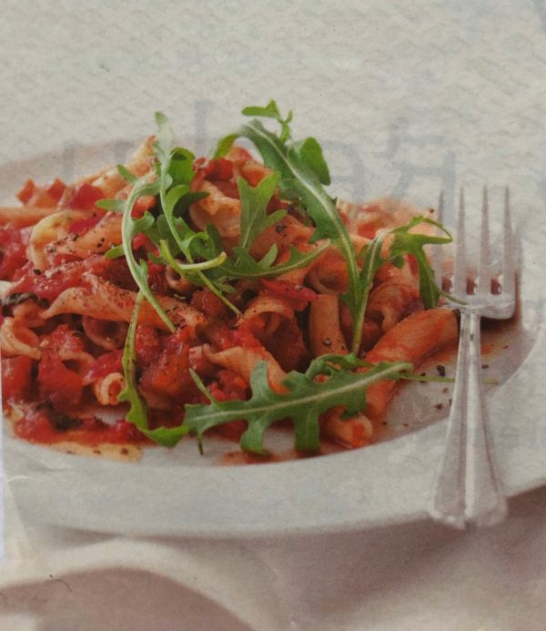 - Na středním plameni rozpálíme olej ve velké pánvi. Přidáme cibuli a česnek, opékáme 3 minuty. Přidáme chilli, rajčatové pyré a po minutě i nakládaná rajčata, za občasného míchání vaříme 15 minut. Vmícháme ocet, oregano, sůl a pepř. Podáváme s těstovinami a rukolou.