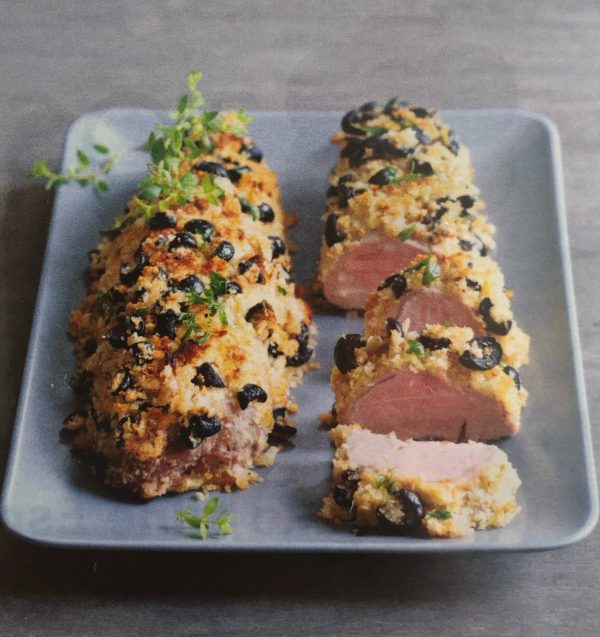 - Strouanku důkladně promícháme s olivami, olejem, česnekem, tymiánem, solí a pepřem a pak v ní obalíme omytou a osušenou panenku. Při 200°C pečeme 20 minut.