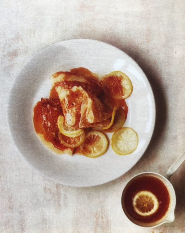 - prošleháme podmáslí, mléko, žloutky kůru. Přisypeme mouku, cukr a sůl, nakonec ricottu a sníh z bílků. Na polevu za stálého míchání vaříme cukr s 60 ml vody, až zhnědne. Odstavíme, vmícháme citronovou šťávu, máslo a 30 ml vody. Uděláme palačinky, ozdobíme karamelovou polevou a citronem.