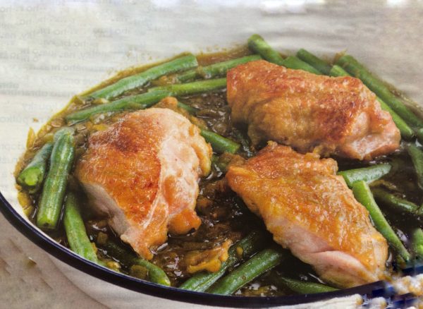 - V pánvi rozpálíme asi 1/2 lžíce oleje a ze všech stran na něm opečeme kuřecí kousky dozlatova. Dáme stranou, na tuk vysypeme cibuli, česnek, zázvor, přidáme další 1/2 lžíce oleje a 5 minut opékáme. Přidáme kari pastu, vývar a do hrnce vrátíme maso. Přivedeme k varu, snížíme plamen a přiklopené necháme 20 minut probublávat. Na posledních 5 minut přidáme do hrnce i fazolky. Podáváme s rýží.