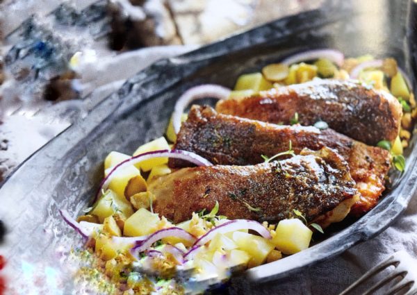 Kapr na víně s lehkým bramborovým salátem