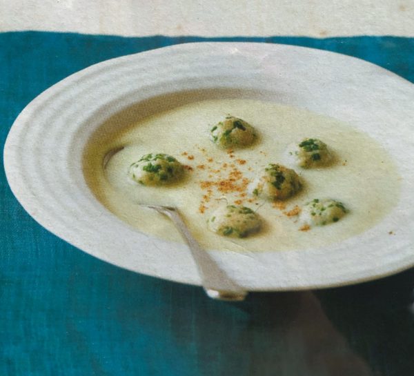 - Polévku rozmixujeme, dochutíme, ozdobíme knedlíčky uhnětenými z rozdrceného toustového chleba, trochy mléka, vejce, nasekané pažitky, soli a pepře. Posypeme muškátovým oříškem.