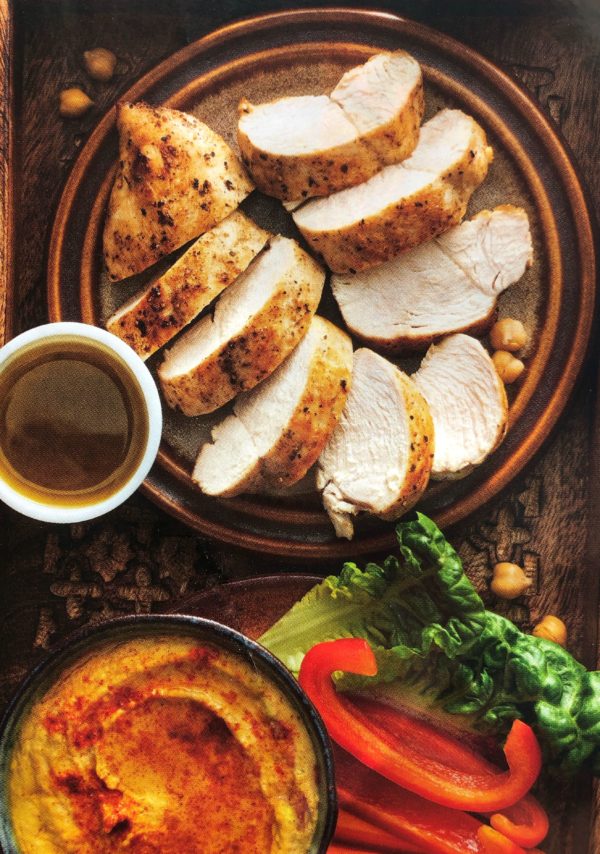 Pečená kuřecí prsa s cizrnovou kaší a římským salátem