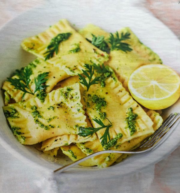 - Připravené ravioly vhodíme do vroucí osolené vody a vaříme asi 3 minuty. Podáváme pokapané olivovým olejem a pestem.