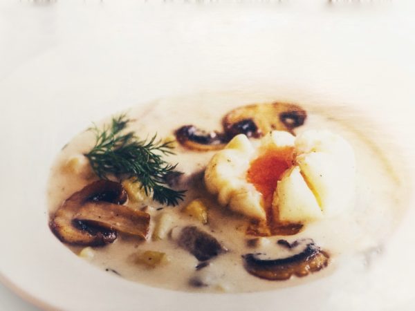 - Polévku podáváme s vejcem a dozdobené koprem.