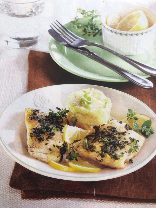 - Tresku pozvolna opékáme na zbylém zahřátém oleji z obou stran a přitom opakovaně potíráme marinádou. Na talíři rybu posypeme bylinkami. Jako přílohu můžeme zvolit šťouchané brambory.