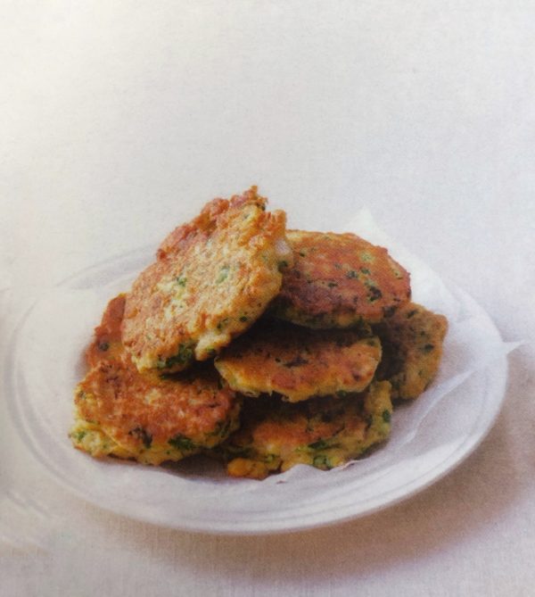 - Do základního těsta vmícháme okapanou, rozmačkanou cizrnu na pastu, pokrájené maso, koriandr a citronovou kůru. Postupně vytvoříme cca 12 placiček a na lžíci oleje osmažíme 3 minuty z každé strany.