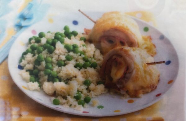 - Gril v troubě rozpálíme na maximum. Všechny plátky osolíme, opepříme, potřeme kečupem a na každý dáme plátek šunky a 2 plátky sýru. Zarolujeme a každý závitek ještě omotáme plátkem sýra. Grilujeme 10 minut ze všech stran, dokud není maso měkké.