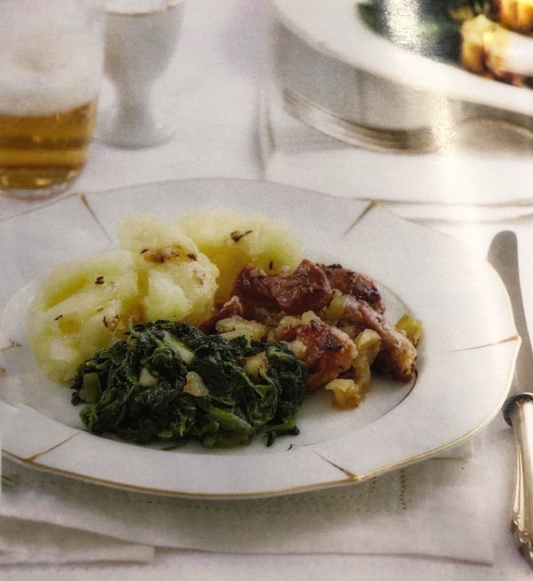 - Jako přílohu připravíme špenát a šťouchaný brambor se slaninkou nebo bramborový knedlík.