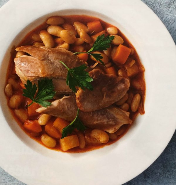 Vařená krůtí stehna s fazolemi