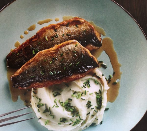 - Na talíř servírujeme bramborovou kaši, přidáme 2 filety mořského vlka a přelijeme citronovou omáčkou. Nakonec posypeme nasekanou zelenou natí lahůdkové cibulky.