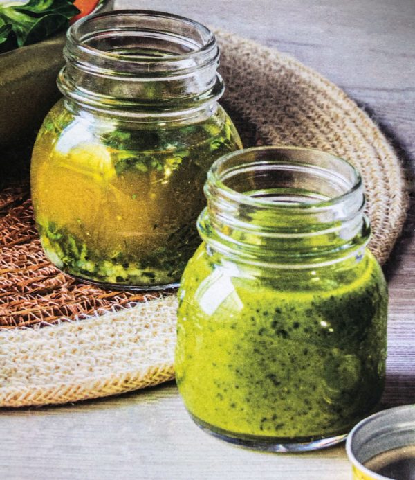 - Bazalku nasekáme najemno. Vsypeme do uzavíratelné nádoby, přidáme rozmělněný česnek, šťávu z limetky, sůl, pepř a olivový olej. Promícháme a uchováváme v chladu až 5 dní.