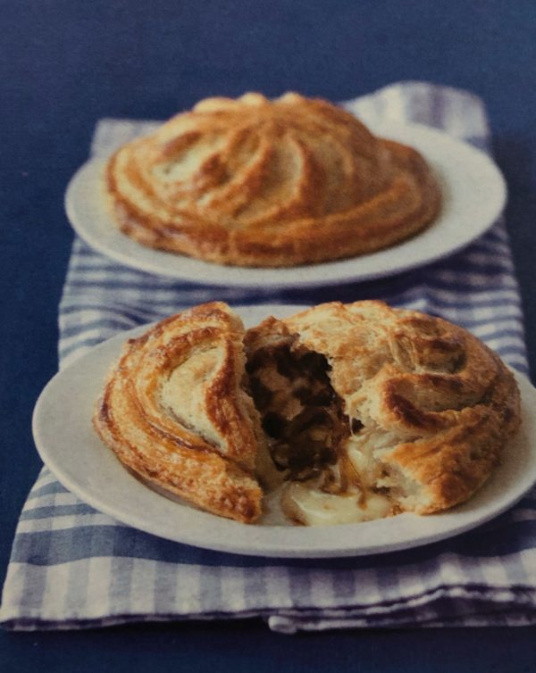 - Troubu předehřejeme na 220°C. Těsto rozválíme a vykrájíme z něj 4 kola větší než sýry. Dvě položíme na plech vyložený pečícím papírem, doprostřed dáme sýr, na ně karamelizovanou cibuli a navrch zbylá kola. Okraje těsta přitlačíme k sobě. Nožem uděláme ozdobné zářezy, potřeme žloutkem a pečeme 10 minut. Snížíme teplotu na 180°C a 20 minut dopečeme dozlatova.