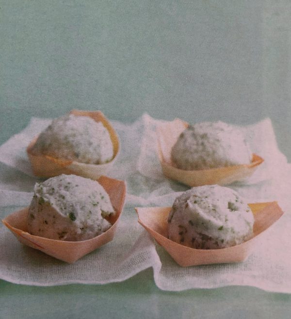 - Cukr nasypeme do rendlíku, zalijeme 125 ml vody a na mírném plameni zahříváme, dokud se cukr nerozpustí. Zvýšíme plamen a minutu vaříme. Dáme zchladnout. Přilijeme kokosové mléko, dalších 125 ml vody, citronovou šťávu, vsypeme nasekanou mátu a dobře promícháme. Přelijeme do nádoby na zmrzlinu a dáme ztuhnout do mrazáku. Jak směs tuhne voda v ní vytváří malé krystalky ledu - hodinu co hodinu je strháme ze stěn nádoby a vmícháme do směsi.