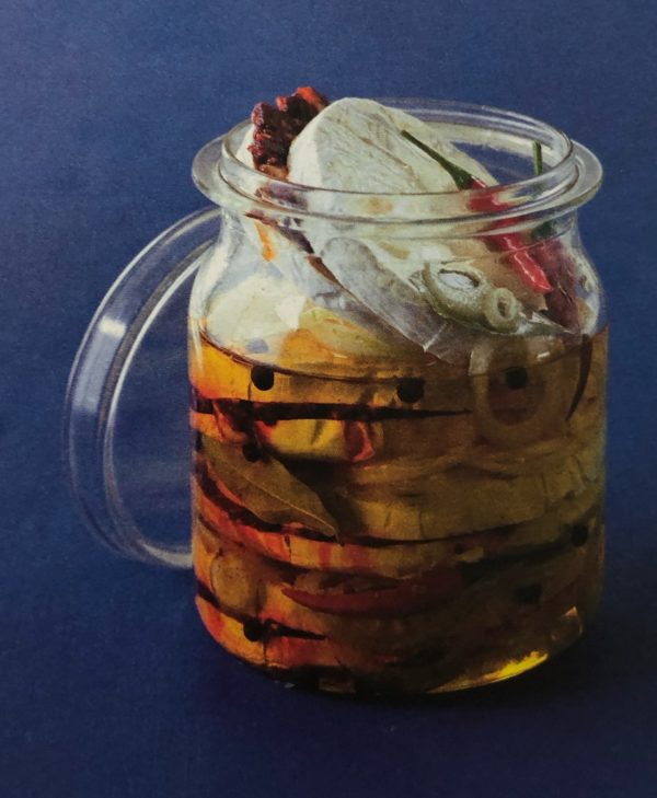- Hermelíny podélně rozkrojíme. Chilli papričky co nejjemněji nasekáme a smícháme s trochou oleje a čtyřmi utřenými stroužky česneku. Vzniklou pastou potřeme spodní díl hermelínů a přiklopíme horními. Zbylý česnek nakrájíme na plátky, cibuli na kolečka. Na dno litrové sklenice dáme pár koleček cibule, jeden bobkový list, dvě kuličky nového koření, pár kuliček pepře, pár plátků česneku, na to posadíme hermelín, přidáme feferonku, další koření a další hermelín. Poslední vrstva je cibule. Zalijeme olejem, prošťoucháme špejlí, aby vyšel všechen vzduch a dáme na 7-14 dnů odležet do chladu.