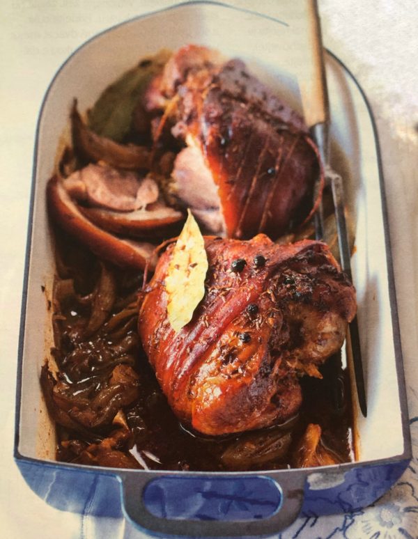 - Následující den dáme kolena do pekáčku, posypeme je zbylým kmínem, nakrájenou cibulí, novým kořením, celým pepřem a bobkovým listem. Zalijeme pivem a 300 ml vody a přikryté pečeme 2 hodiny při 180°-200°C. Občas podléváme. Pak odkryjeme a půl hodiny dopékáme dorůžova. Upečené koleno vyndáme z výpeku, šťávu slijeme, vyjmeme koření, zahustíme ji chlebem, rozmixujeme tyčovým mixérem a podle potřeby dochutíme. Koleno podáváme se šťávou, chlebem a vejmrdou.