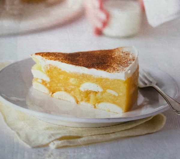 - Na dno vymazané dortové formy rozložíme piškoty, přelijeme částí jablečného pudinku, zakryjeme piškoty a nakonec znovu pudinkem. Necháme vychladnout. Zakysanou smetanu smícháme s vanilkovým cukrem, potřeme dort, posypeme skořicí a dáme vychladit do lednice.
