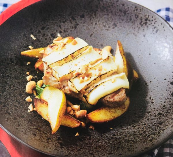 Vepřová pečeně s kozím sýrem a hruškou