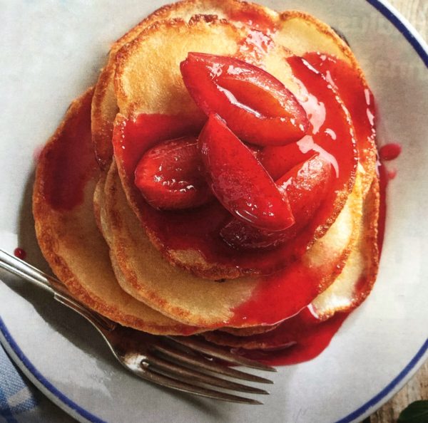 - Lívance dáme na talíř, na ně položíme zkaramelizované švestky a zalijeme šťávou, kterou na pánvi „pustily“.