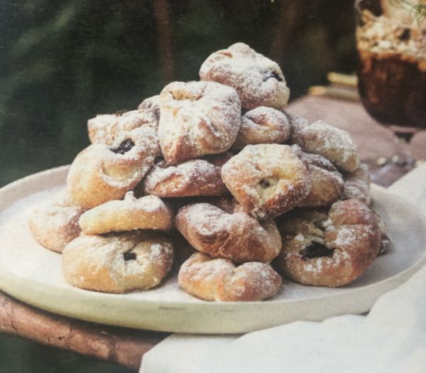 - Odložené těsto vyválíme na pomoučněné ploše na tloušťku cca 3mm. Nakrájíme čtverečky cca 4x4 cm a doprostřed každého čtverečku dáme náplň. Na tvarohovou ještě přidáme rozinku. Čtvereček poté zabalíme do šátečku. Pečeme v troubě na 180°C cca 16 minut do zrůžovění.