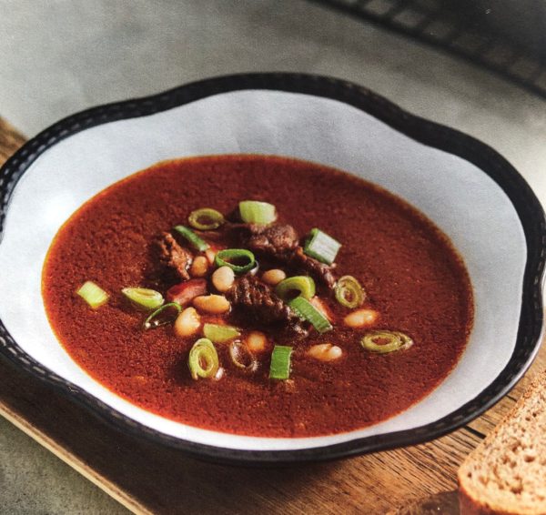 - V hrnci necháme rozpustit 2 lžíce sádla a dozlatova orestujeme cibuli nakrájenou najemno. Přidáme hovězí maso nakrájené na nudličky a kmín a zarestujeme. Přidáme prolisovaný česnek, protlak, zasypeme paprikou a krátce restujeme. Podlijeme vývarem, osolíme, opepříme a vaříme mírným varem doměkka (45-50 minut). V dalším hrnci rozpustíme zbylé 2 lžíce sádla, přisypeme hladkou mouku a připravíme tmavší jíšku. Klobásu nakrájíme na půlkolečka a opečeme v rozehřáté pánvi. Do hrnce s masem přidáme před dokončením fazole, které jsme uvařili dle návodu na obalu, a orestovanou klobásu. Zahustíme připravenou jíškou a ještě alespoň 15-20 minut provaříme. Na konec přidáme majoránku.