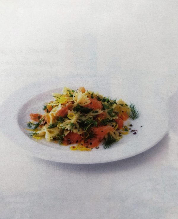 - Prvních 6 ingrediencí smícháme v misce. Těstoviny uvaříme, scedíme a vrátíme do hrnce, kde přidáme směs z misky a dobře promícháme. Osolíme, opepříme dle chuti a přidáme nakrájeného lososa.