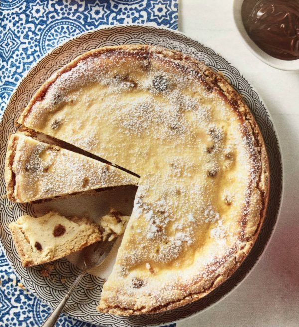 - V robotu smícháme změklé máslo s oběma cukry a žloutky. Do zastaveného robota přisypeme také mouku s kypřicím práškem a citronovou kůru. Těsto přendáme na moukou posypaný vál, zpracujeme a vyválíme do tvaru kulaté pečicí formy. Těsto přeneseme do formy a v ní vytvoříme asi 2 cm vysoké okraje. Těsto na dně formy rovnoměrně rozprostřeme, aby nebylo v některých místech příliš silné.