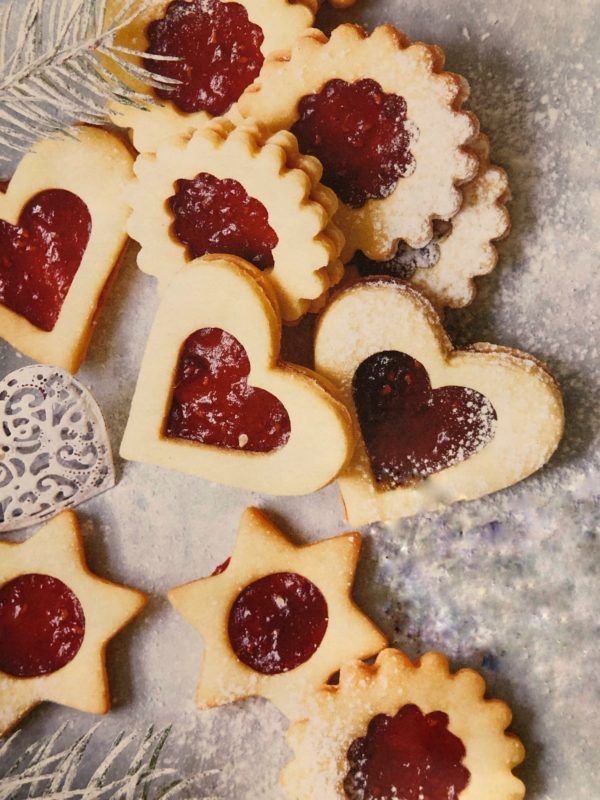 - Na vále smícháme mouku s cukry, uprostřed uděláme důlek a vyklepneme žloutek. , přidáme lžíci mléka a nastrouhané máslo. Uhněteme, dokud nemáme pevné těsto. Vyválíme cca 2 mm silný plát a vykrajujeme tvary. Pečeme cca 5 minut a po zchladnutí slepujeme marmeládou.